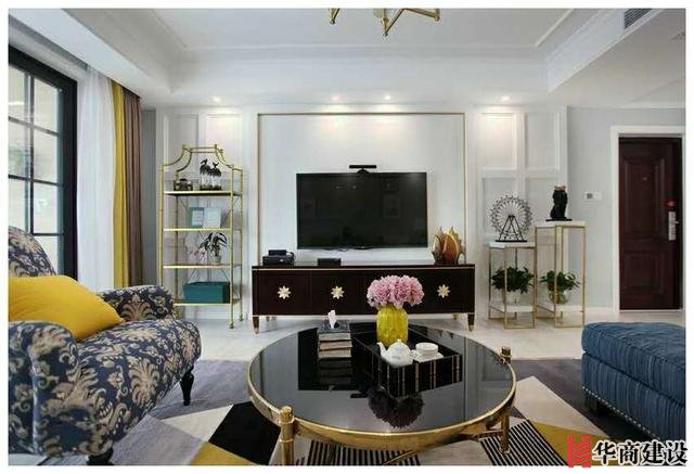 新家採用的是一個美式風,雖然裝修費不多,但是卻有種小資情調,特别是這個客廳,讓人有種在别墅的錯覺。以簡潔的硬裝加上别出心裁的軟裝,利用黃銅色鐵藝與黑色烤漆爲主,豔色擺件裝飾爲襯,輕奢的韻味撲面而來。
