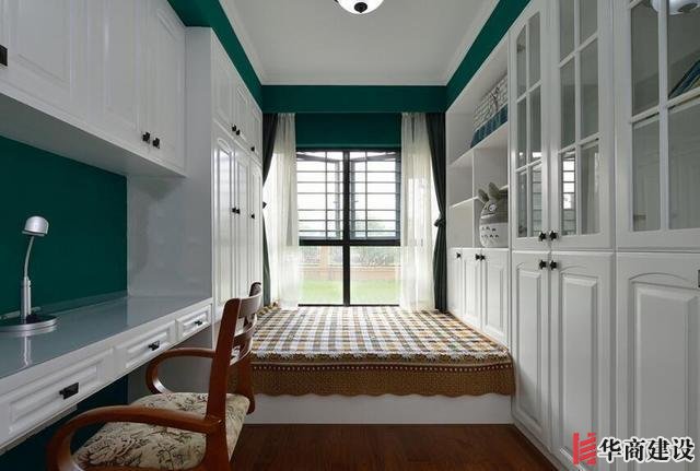 可以根據房間大小定制一個榻榻米+吊櫃+書桌的設計,一間房不僅可以休息,而且還能當做書房使用,上下打出的櫃子。留下瞭更多的儲物空間,就連反季的衣物都有地方收納瞭!