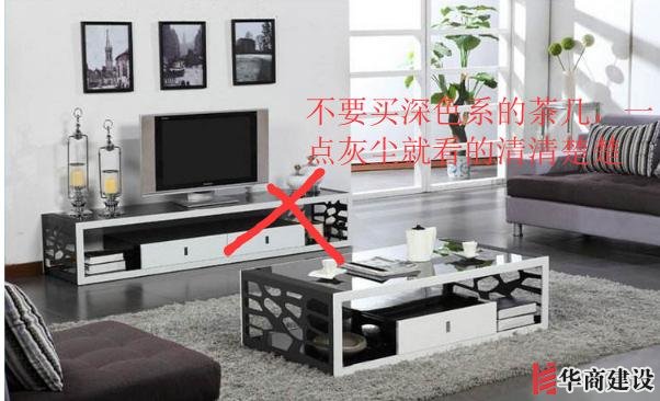 2、客廳的電視櫃和茶幾,不要買深色系的,一點灰塵看的清清楚楚,後期可有你忙的。