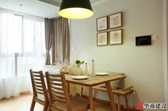 餐桌椅靠牆擺放,是那種帶闆凳的原木餐桌,價格不低,外形要做改良。這個效果還是很滿意的。