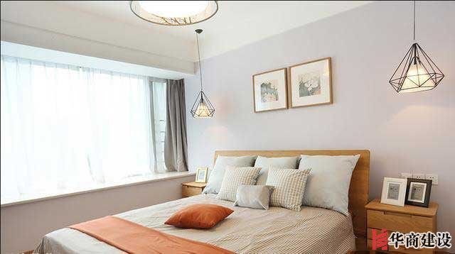 這個就是主卧的整體效果瞭,擺上一張床,兩個精緻小巧的床頭櫃,一整排的衣櫃不怕衣物沒地方儲存,兩側一樣一個吊燈垂下,頗有北歐風格的那種典型的氣質和時尚。你們覺得自己花瞭設計費的裝修能給同小區的人借鑒嗎?